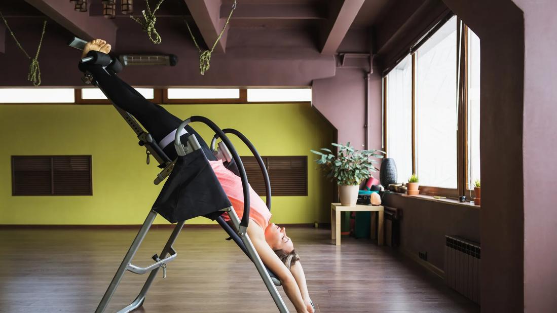 Inversion tables — which suspend you upside down — are said to relieve back pain by taking pressure off your spine. Whether or not they work is another question.