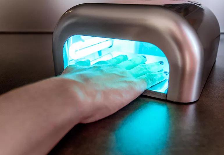 When you get a manicure, these special lamps help to set gel manicures and dry polish. They emit ultraviolet rays, which can cause skin cancer and age skin prematurely.