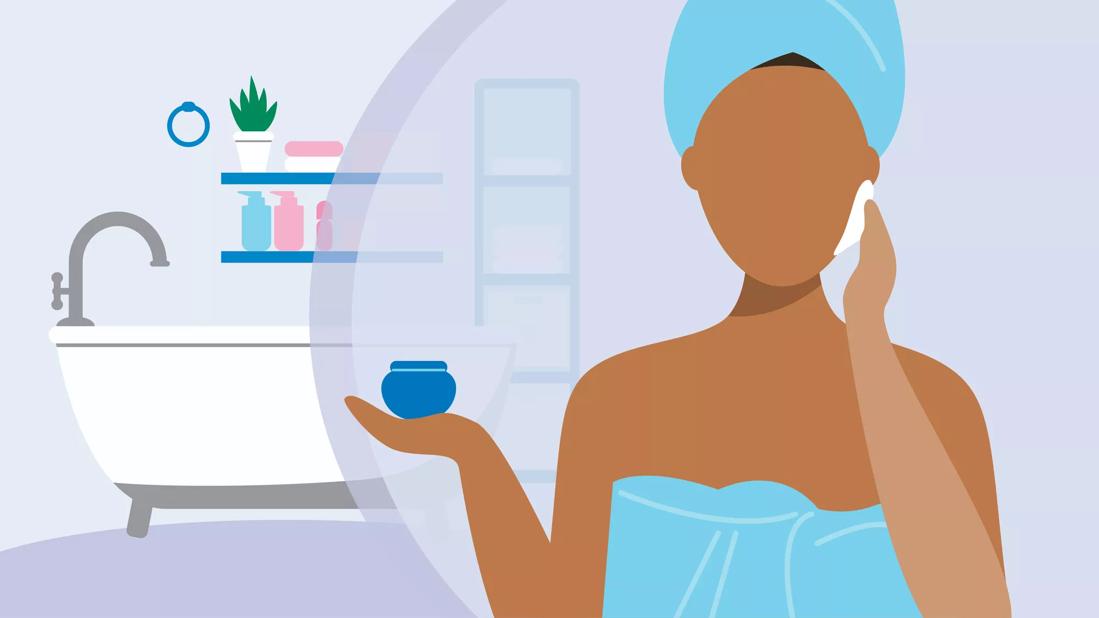 Moisturizing, especially after bathing, is vital. But Szemon says to look for an option that’s free of fragrance, dye and harsh chemicals — all of which can cause irritation.