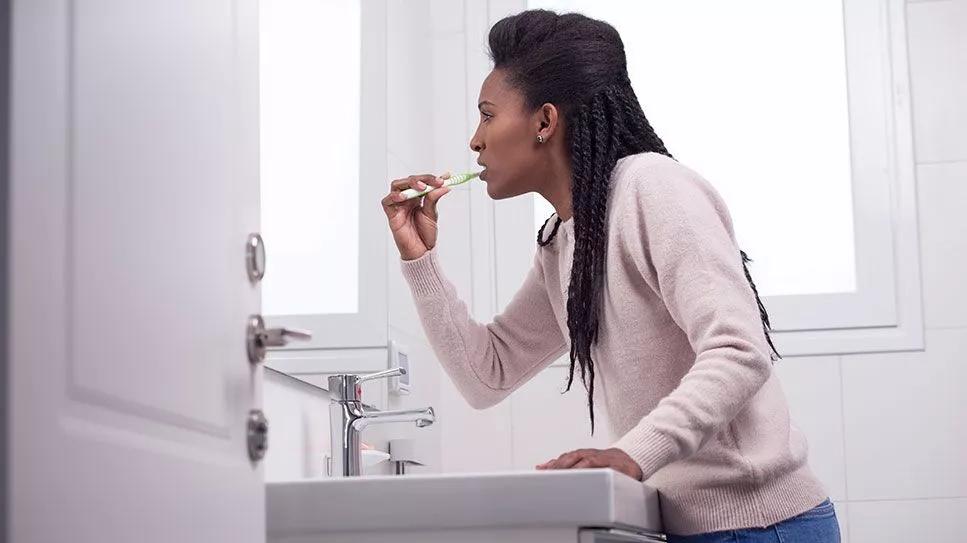 “Dry mouth is a common symptom in menopause, and it can fuel periodontal disease,” Dr. Kahn shares. “Saliva helps to moisten and cleanse the mouth by neutralizing acids produced by plaque. So, less saliva can lead to halitosis (bad breath) and plaque buildup.”