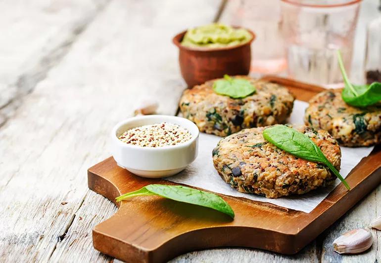 Quinoa vegan patties on a table.