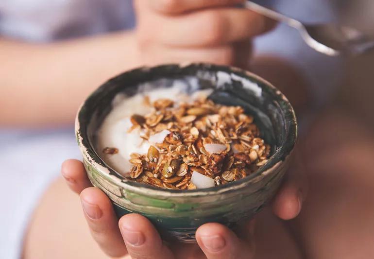 Targeting foods that can deliver all these needs – carbohydrates, protein and healthy fat – at once is also a great way to maintain a good balance, she says. “Nuts are a great example because, depending on what type you’re eating, they feature all three of these and make a great snack that can keep your blood sugar better controlled.”