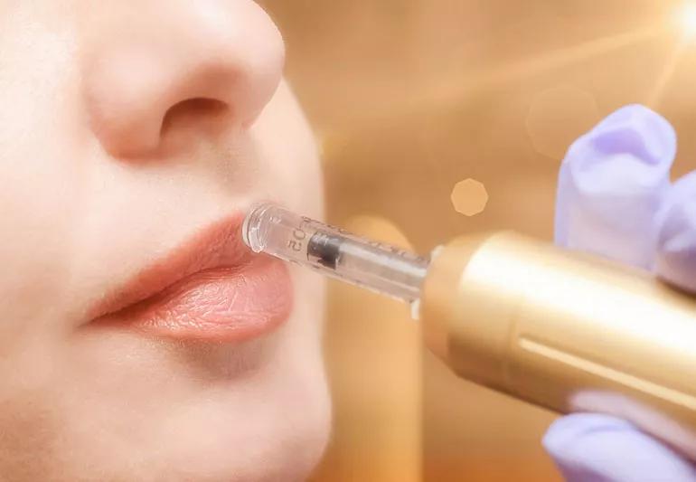 Hyaluron pens are needle-free devices that use compressed air pressure to push hyaluronic acid through your skin into the deeper tissue to help create the appearance of fuller, plumper lips. They claim to be modeled after handheld jet injectors that are often used for administering medications like immunizations and insulin.
