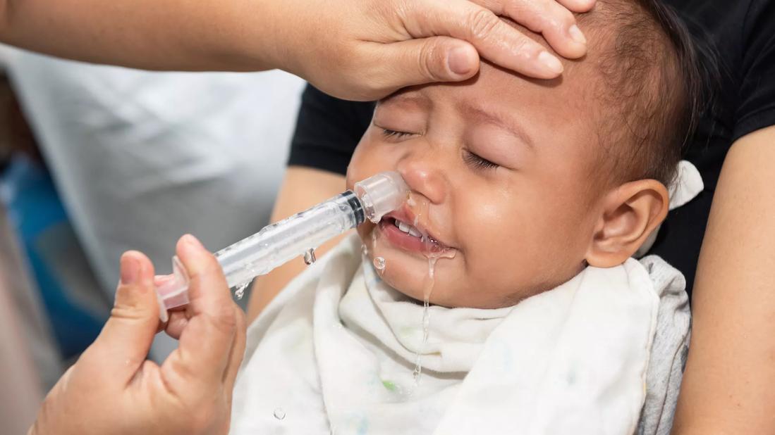 It’s important to take special care when preparing for nasal irrigation. Young children’s immune systems are still developing, says Dr. Diard. To protect your baby’s health, make sure to carefully follow instructions for mixing the saline solution and flushing the nasal passages.