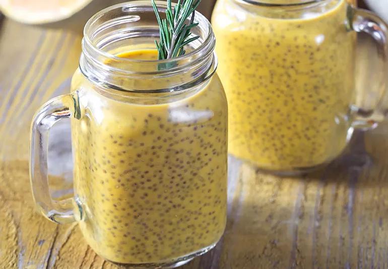 Healthy chia seeds thicken up this dessert while providing you with omega-3 fatty acids, antioxidants, potassium, iron and calcium. A bit of honey lends it some sweetness. And, of course, the pumpkin puree brings all the fall flavor, as well as being a good source of vitamin A, vitamin C and fiber!