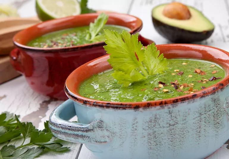 This cool, green and creamy soup is very satisfying and healthy. It’s powered up with spinach and seasoned with fresh herbs. You’ll enjoy the unique, fresh flavors.
