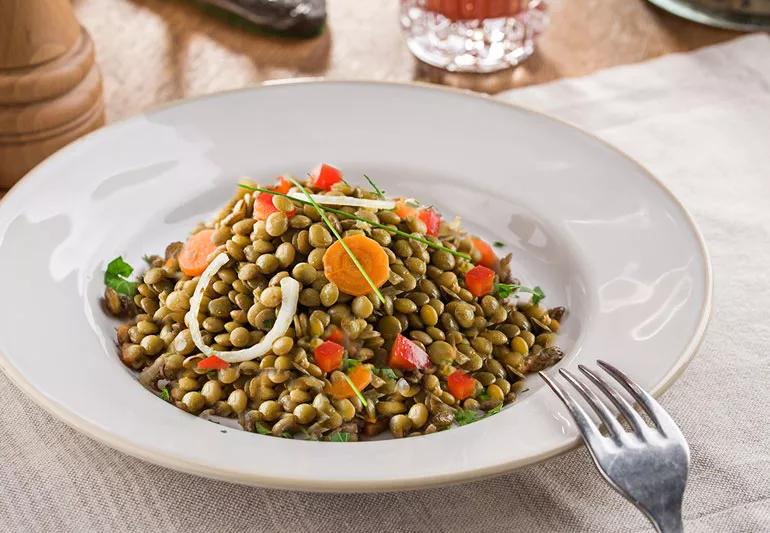 This lentil salad will surprise you with all its flavor and nutritional benefits. The walnut oil, chicken broth, bay leaf, and orange zest are some of the unusual ingredients that will thrill your taste buds.