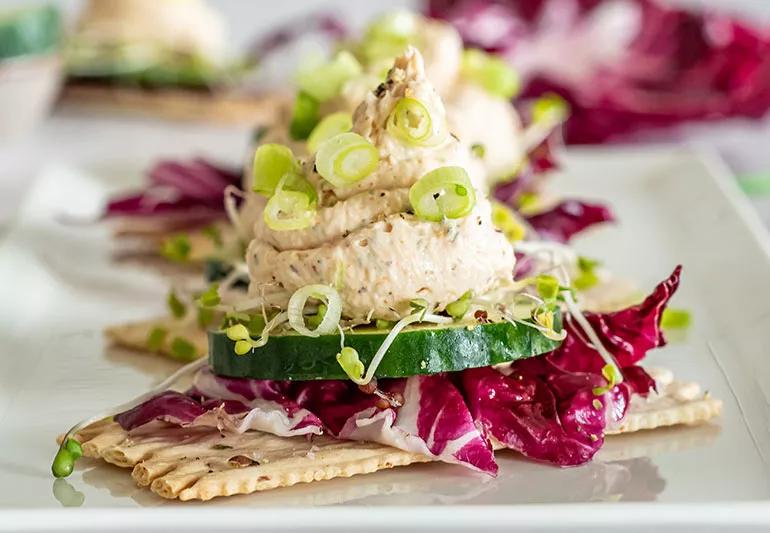 Did you know fresh salmon makes a delightfully light mousse? Try piping or spooning it onto small radicchio leaves or your base of choice. Prepare the salmon mixture ahead of time, but assemble the appetizer no more than an hour before serving.