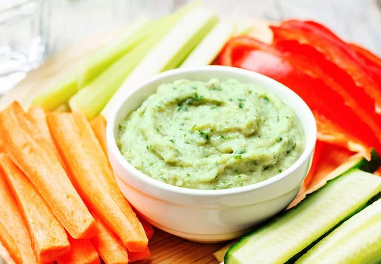 When you come home hungry, you often reach first for something sweet. Resist that urge and try this dip instead. It’s a great filler for late afternoon or early evening cravings because it’s loaded with protein and healthy fat. Have it ready to go in the refrigerator with some blanched broccoli, beans or asparagus for dipping.
