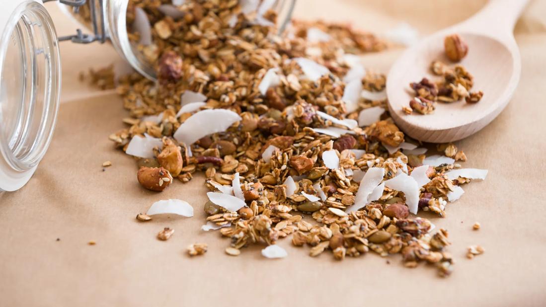This trail mix fits easily in a pocket or purse and can help you avoid spur-of-the-moment fast food or other unhealthy choices. The key is to include a protein source, like the nuts and seeds found in this trail mix recipe, as well as a fiber source, provided by the nuts, seeds, whole grains and dried fruit.