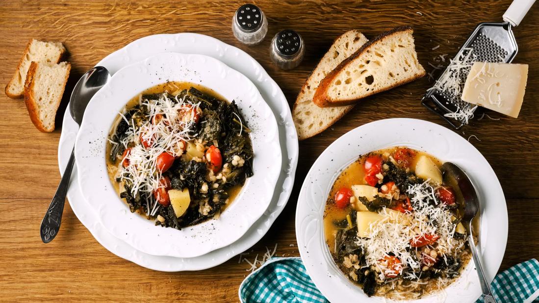 For warming your heart, there are family, friends, beloved pets and great stories. For warming the rest of you, there’s soup! This hearty barley soup is the perfect antidote to blustery, bone-chilling winter weather. Featuring kale, carrots, celery, tomatoes, onion, and garlic, it’s loaded with nutrients, fiber and flavor.