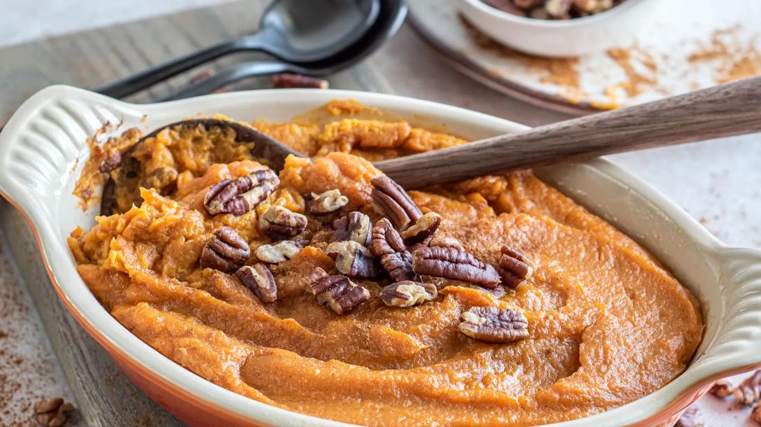 Sweet potatoes are known for being an excellent source of vitamin A, but one cup also contains 37% of your recommended daily intake of vitamin C. Together, vitamin A and vitamin C provide a powerful defense against damaging free radicals to help keep our immune systems strong. And our delicious recipe delivers on the nutrients, while keeping the flavor and limiting the fat.