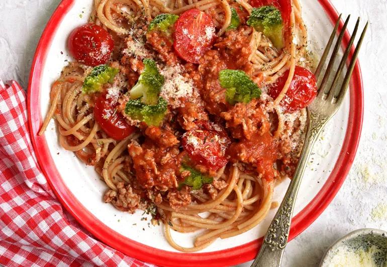 Fewer carbs, lean protein and a pop of greens make this classic a tasty alternative