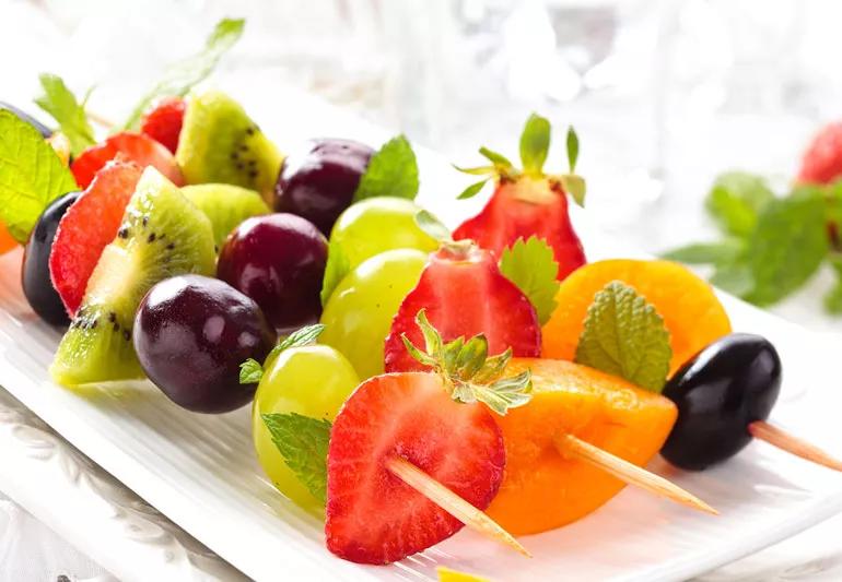 Many of us are familiar with the dish called kabobs that consist of small cubes of meat or fish threaded on a skewer and grilled. These minted fruit kabobs are a fresh, sweet version that make for a light and pretty dessert or a fun snack.