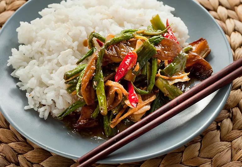 These green beans offer sweet and spicy flavors along with the distinctive taste of cilantro and Thai basil. The texture, color and taste of these beans make it a great side dish, and you can also use the sauce to pour over grilled white fish or chicken.