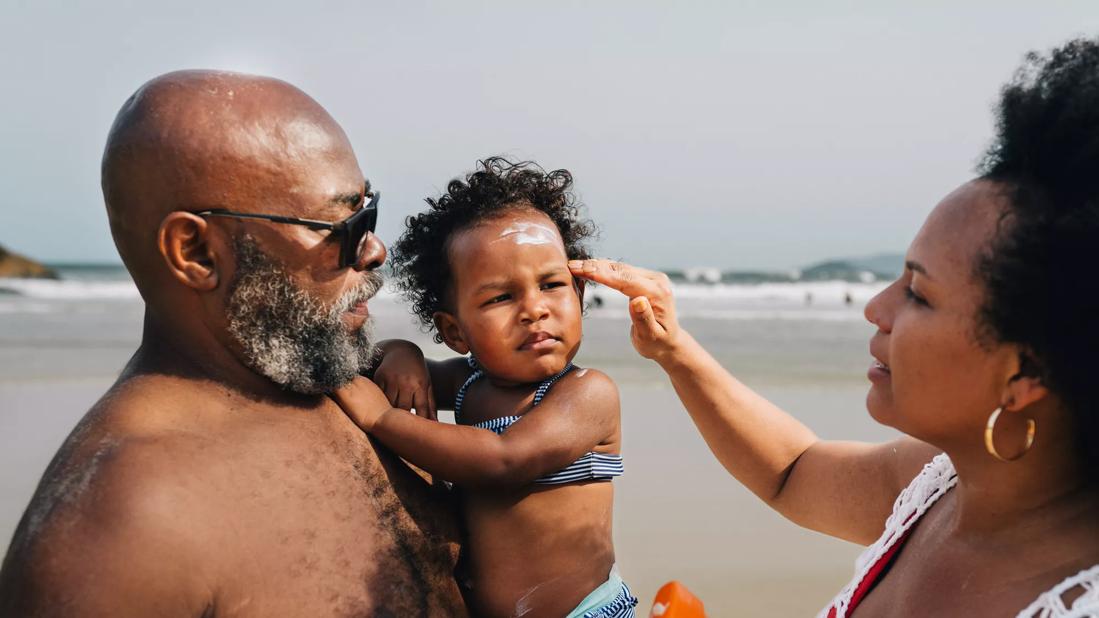 “When babies are covered in sunscreen, it can keep them from sweating. They can’t evaporate the heat off,” Dr. Moresea explains. “Babies already can have more difficulty regulating their body temperature. And when you put on sunscreen, it can trap the heat in.”