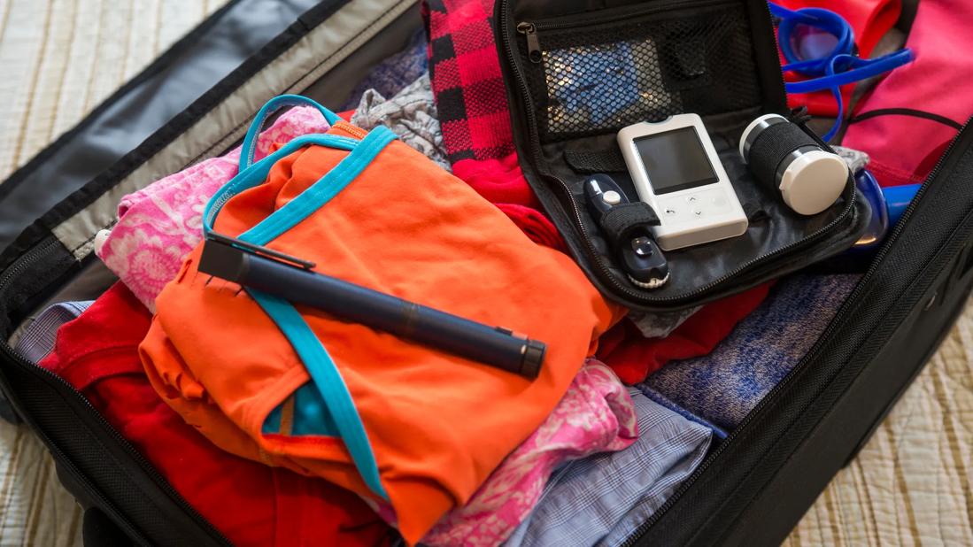 And it’s best to pack your medication and supplies in your carry-on luggage if you’re traveling by plane. (An important note: People with diabetes don’t have to follow the TSA’s 3.4-ounce liquid rule.)