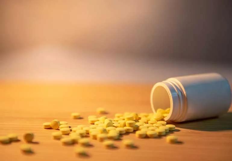 spilled pills on table top