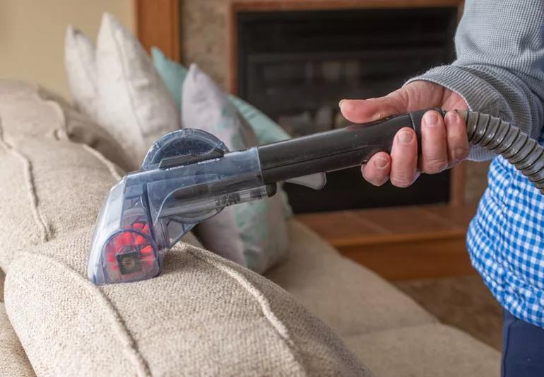 While cleaning some fabrics can be tricky, Dr. Zack says simple vinegar solutions and upholstery cleaners can adequately disinfect them.